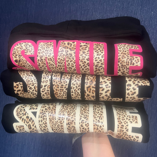 Leopard SMILE Black and Pink Cowl Hoodie, Classic Hoodie and Sweater